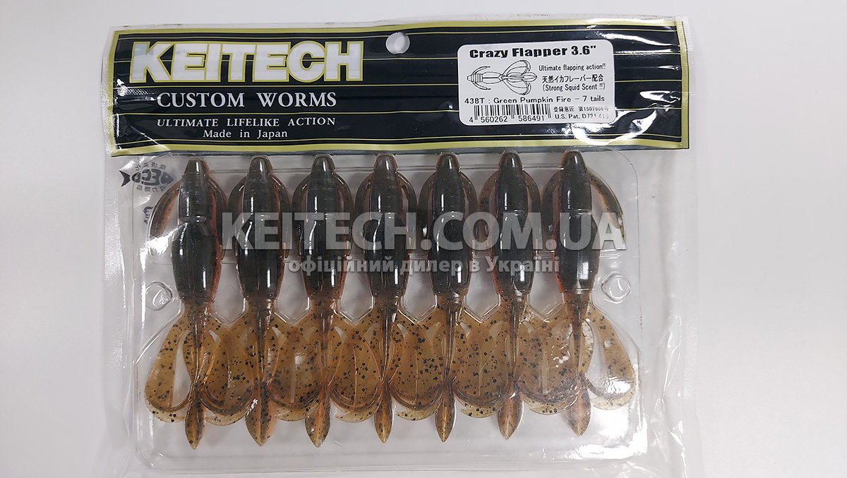 Силікон Keitech Crazy Flapper 3.6" (7 шт/упак) колір: 438 green pumpkin fire