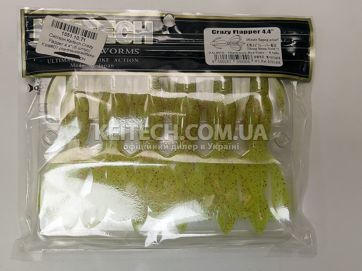 Силікон Keitech Crazy Flapper 4.4" (6 шт/упак) колір: pal#01 chartreuseredflake