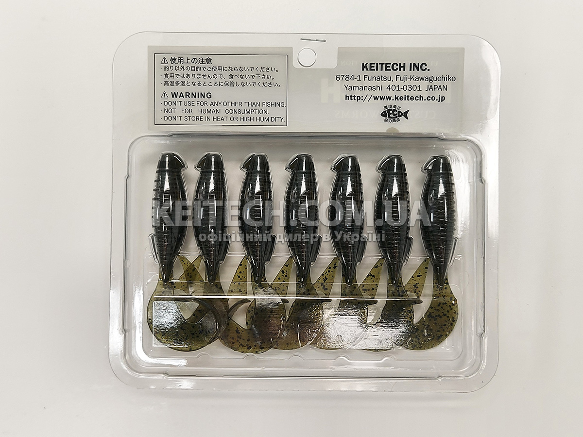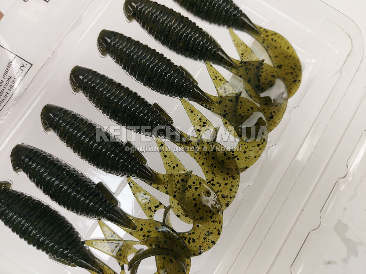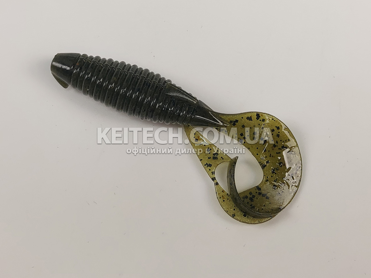 ДокладнішеСилікон Keitech Flapper Grub – перший класичний твістер, випущений під торговою маркою Keitech. Але навіть і тут японці привнесли кілька своїх родзинок у здавалося б звичну всім приманку. Його закручений хвіст оснащений лопатою, яка дозволяє силікону вмикатися в роботу на мінімальних швидкостях проводки. Це дає деякі переваги при лові пасивної риби, не готової ганятися за здобиччю. Тіло твістера трохи плескато у верхній частині, що дозволяє ідеально підібрати для нього офсетний гачок, жало якого буде лежати на поверхні і при першій же можливості встромиться в пащу риби. Для того, щоб гачок краще тримався в тілі приманки, передбачені спеціальні виступи в місцях входу та виходу дроту офсетника, завдяки яким значно триватиме термін служби приманки і вона не почне раніше сповзати з гачка. Також цей твістер легко можна оснастити двійником або класичною джиг-головкою, що робить його універсальним для будь-яких умов лову.