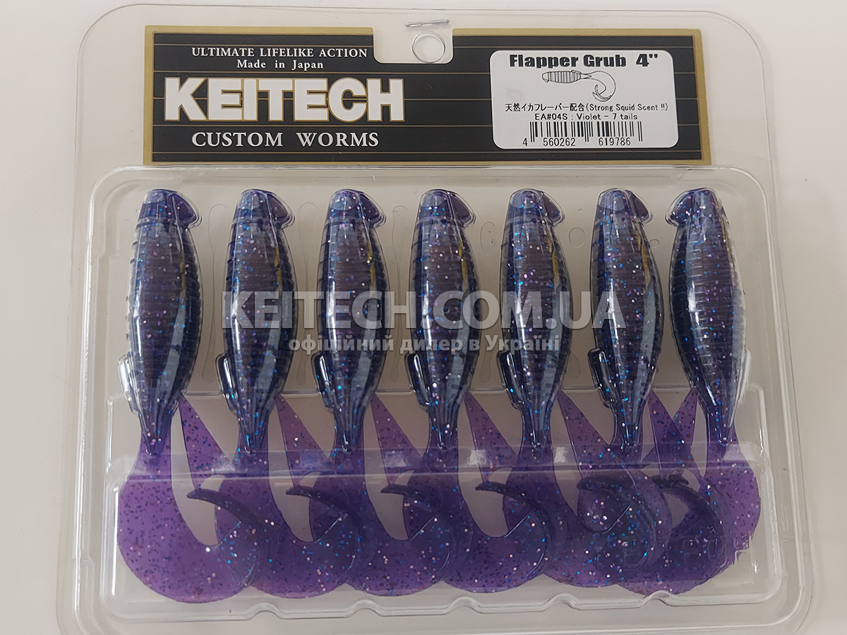 Силікон Keitech Flapper Grub 4" (7 шт/упак), колір:ea#04 violet