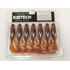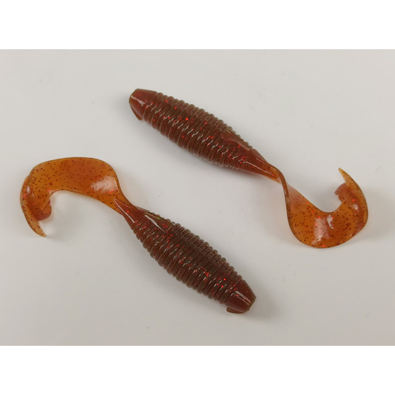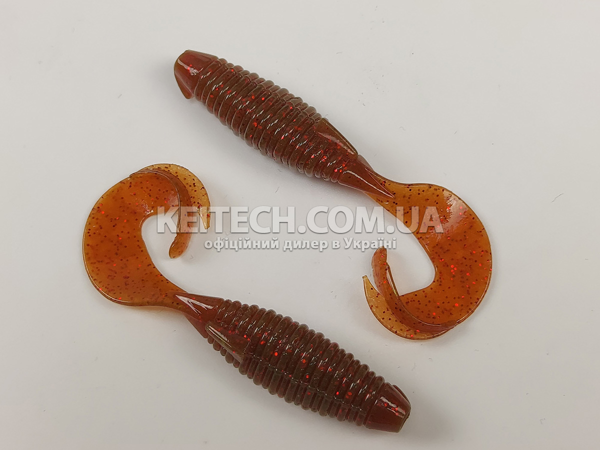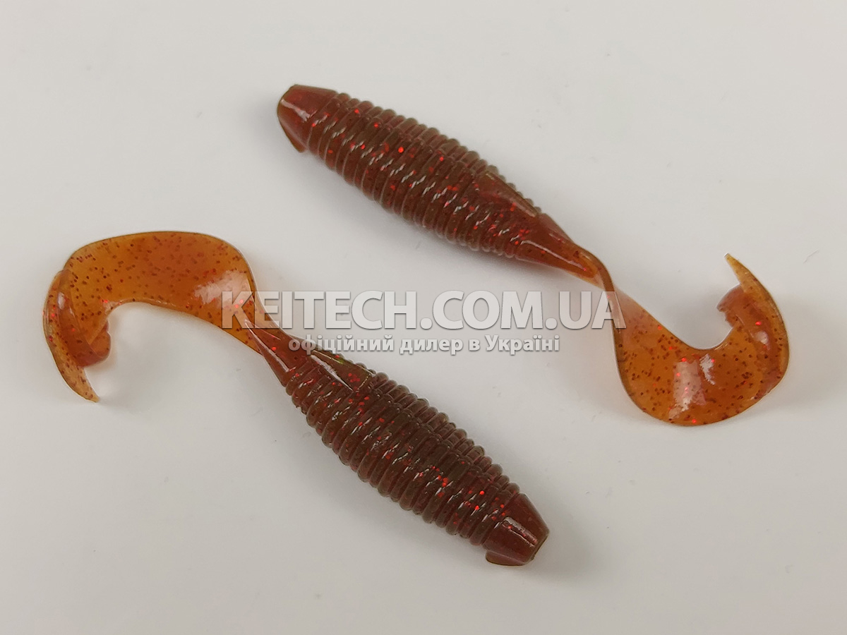 ДокладнішеСилікон Keitech Flapper Grub – перший класичний твістер, випущений під торговою маркою Keitech. Але навіть і тут японці привнесли кілька своїх родзинок у здавалося б звичну всім приманку. Його закручений хвіст оснащений лопатою, яка дозволяє силікону вмикатися в роботу на мінімальних швидкостях проводки. Це дає деякі переваги при лові пасивної риби, не готової ганятися за здобиччю. Тіло твістера трохи плескато у верхній частині, що дозволяє ідеально підібрати для нього офсетний гачок, жало якого буде лежати на поверхні і при першій же можливості встромиться в пащу риби. Для того, щоб гачок краще тримався в тілі приманки, передбачені спеціальні виступи в місцях входу та виходу дроту офсетника, завдяки яким значно триватиме термін служби приманки і вона не почне раніше сповзати з гачка. Також цей твістер легко можна оснастити двійником або класичною джиг-головкою, що робить його універсальним для будь-яких умов лову.
