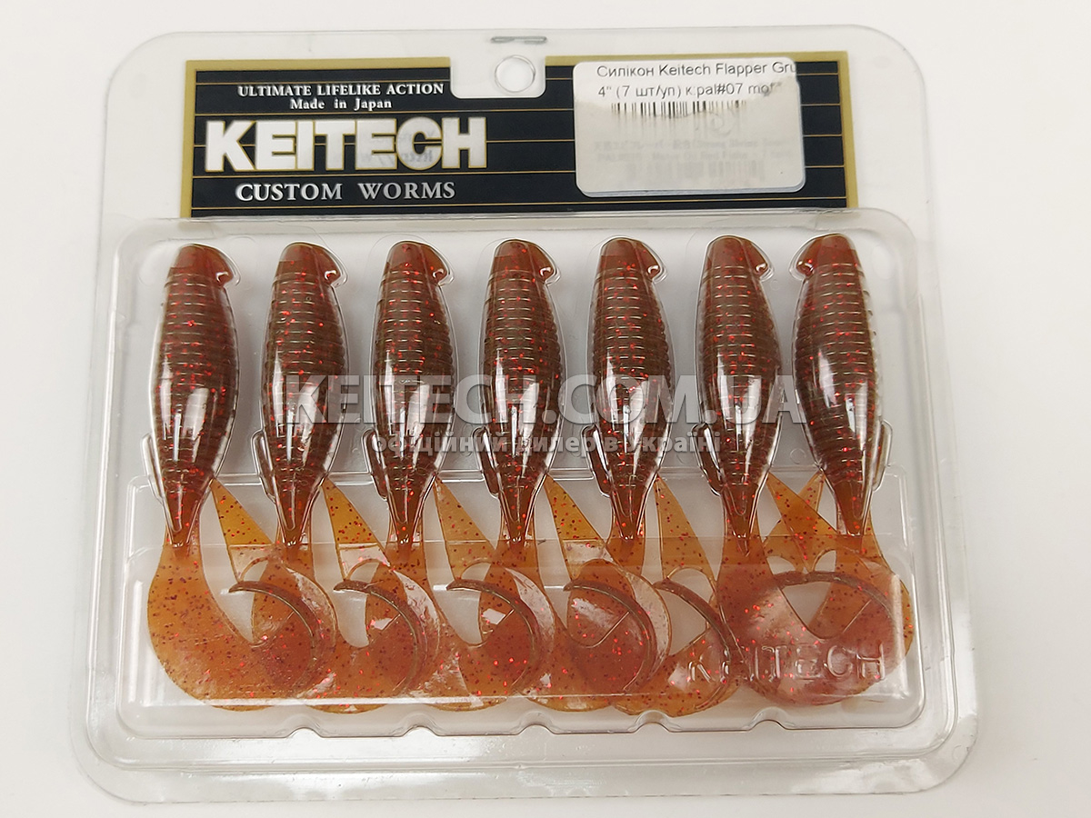 Силікон Keitech Flapper Grub 4" (7 шт/упак), колір:pal#07 motoroil red flake