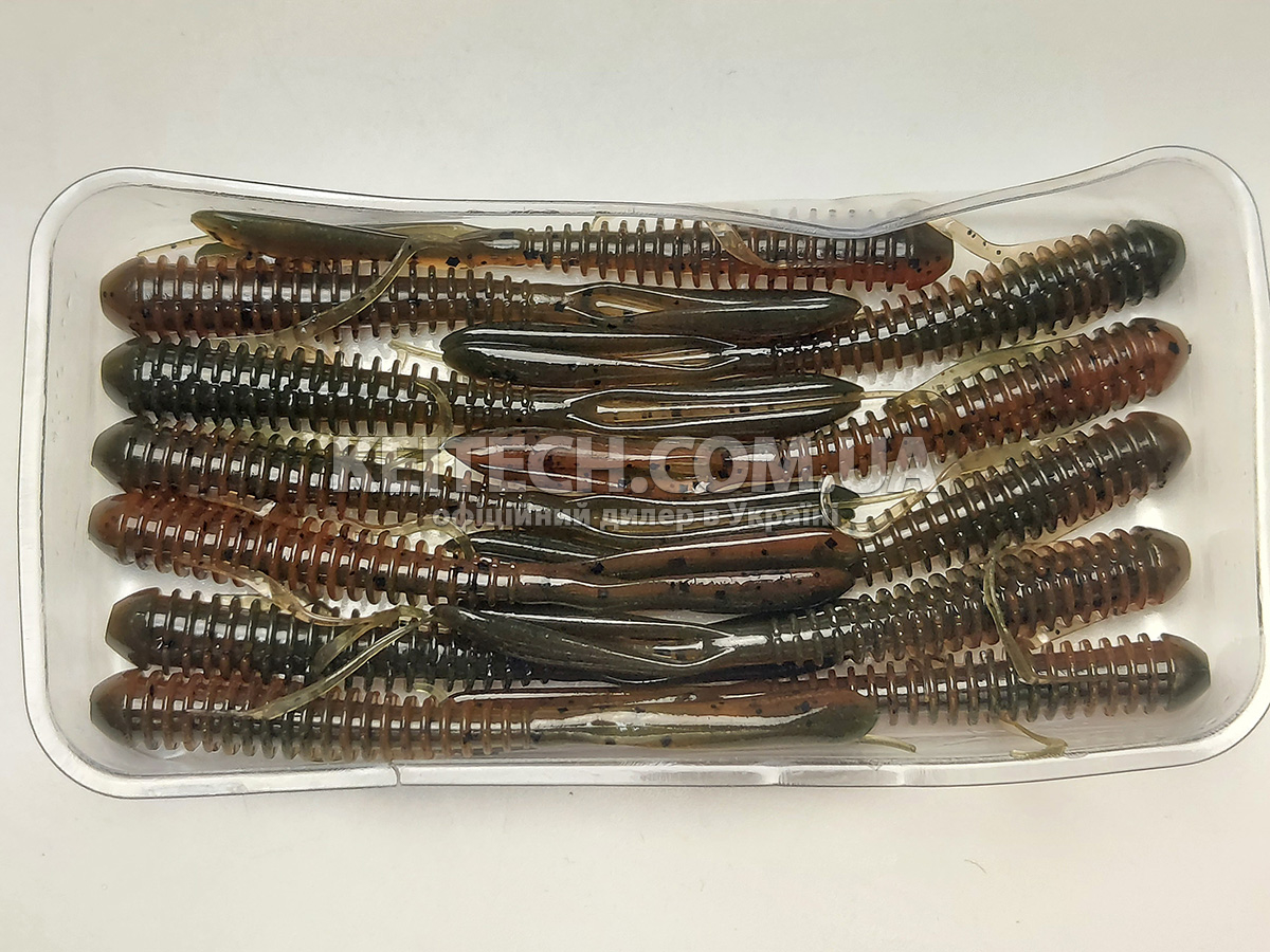 Оснащення. Крім того, Hog Impact можна використовувати і на джиг-головці, як трейлер на класичному «мохнатом» джизі, а також на шарнірному оснащенні. Hog Impact – це саме та приманка, яка допоможе вам розворушити пасивного хижака, особливо у водоймах із сильним рибальським пресингом, де класичні приманки практично не викликають інтересу у риби. Випускається у розмірах: 3”, 3.5”, 4”.