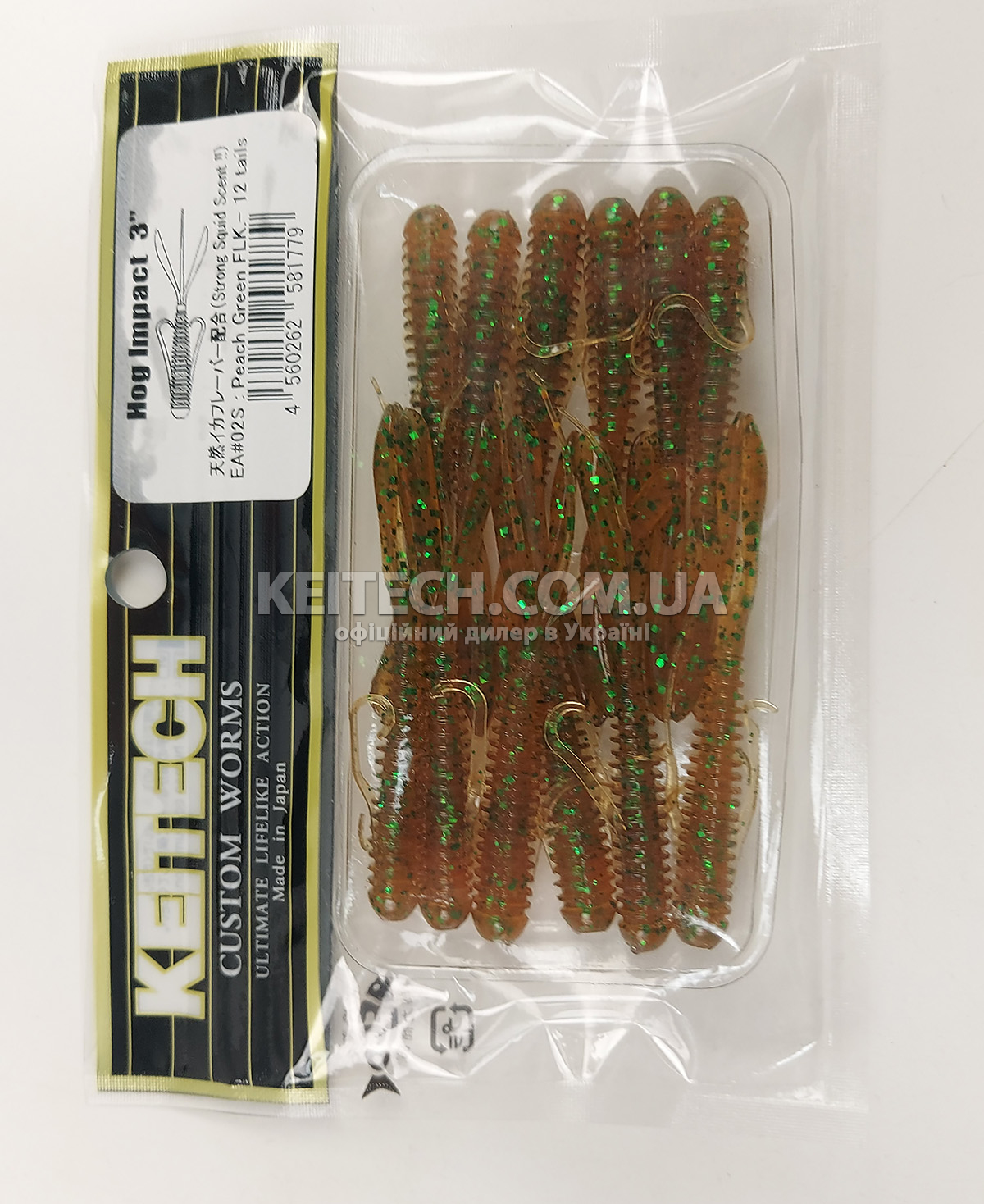 Силікон Keitech Hog Impact 3" (12 шт/упак), колір:ea#02 peach green flk.