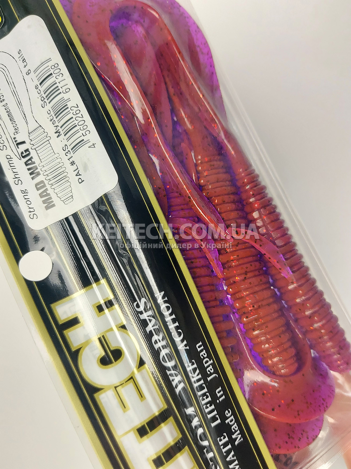 ДокладнішеСилікон Keitech Mad Wag – одразу відстежується фундаментальний підхід розробників при створенні приманки. Модель є твістером з досить масивним хвостом і радіальними ребрами із системою Point Guard System - спеціальними прорізами для офсетного гачка, які підвищують шанси не зачепитися за жорсткі перепони на дні, а також за водорості.