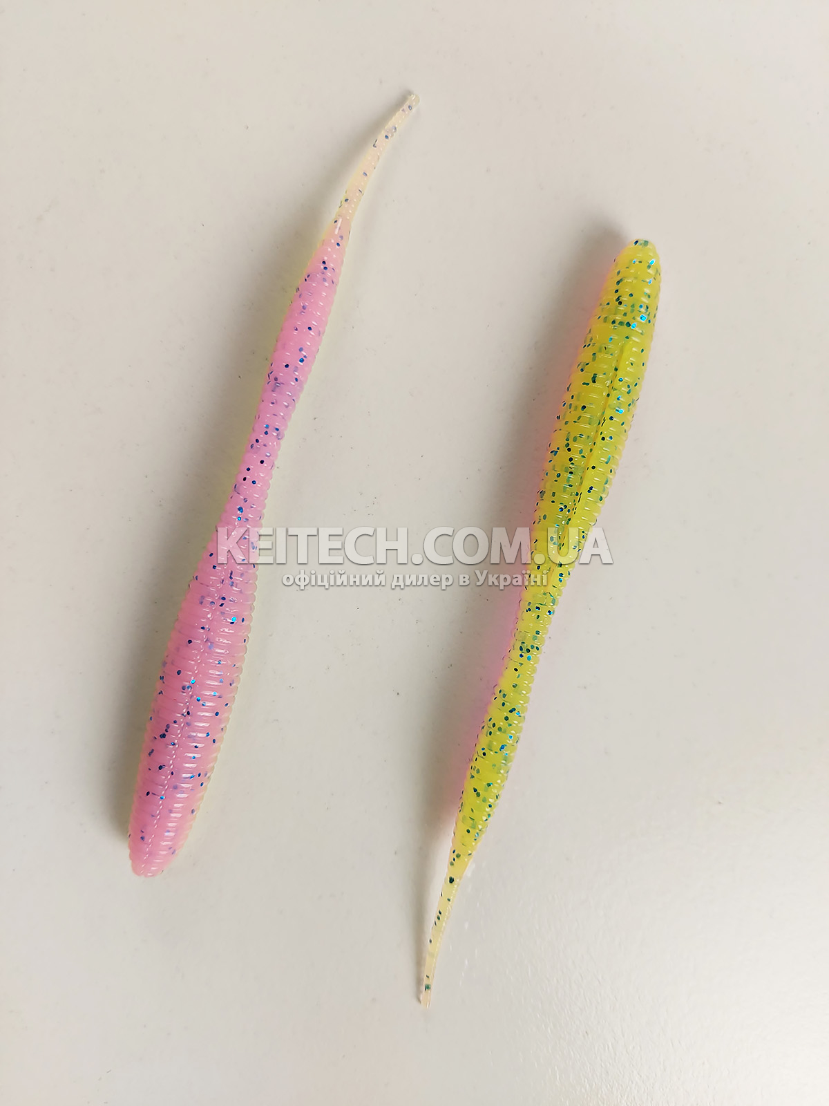 ДокладнішеСилікон Keitech Sexy Impact – дуже оригінальна приманка типу слаг. Тіло приманки має складну форму: круглу у передній частині, уплощення у вертикальній площині, а задня частина закінчується довгим, тонким і дуже рухливим хвостиком. Зверху знаходиться спеціальна виїмка для офсетного гачка. Тіло приманки зроблено з двох видів силікону для кращого балансу – зверху більш легкий(без солі), знизу – більш важкий(з сіллю). Sexy Impact – підходить для безлічі різних оснащень і проводок. Приманка відмінно поводиться на ривковій проводці з успіхом імітуючи малька, який кидається з боку в бік. Також можна використовувати Sexy Impact на звичайній джиг головці, дроп-шоти, спліт-шот, техаському оснащенні.