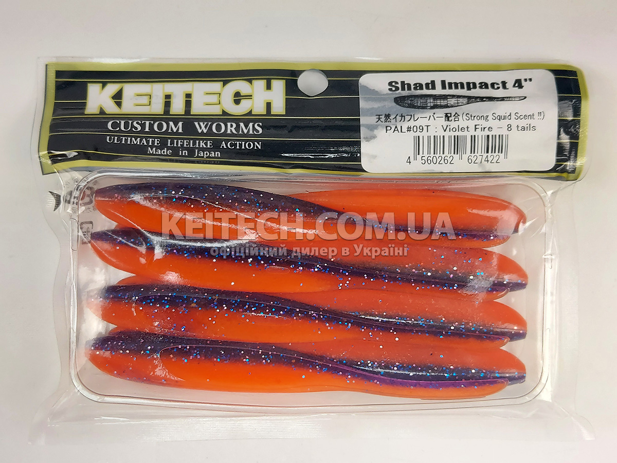 Силікон Keitech Shad Impact 4" (8 шт/упак), колір:pal#09 violet fire