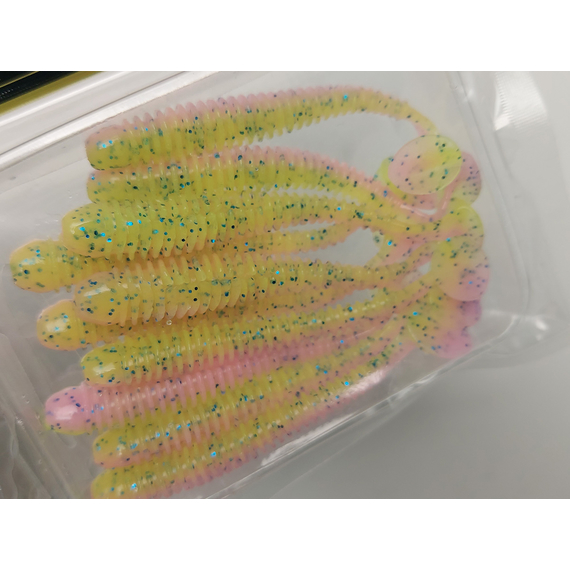 Приманка випускається у розмірах 2, 3, 3.5, 4 дюйми. Чотирьохдюймовий варіант відрізняється від менших наявністю прорізу для офсетного гачка.