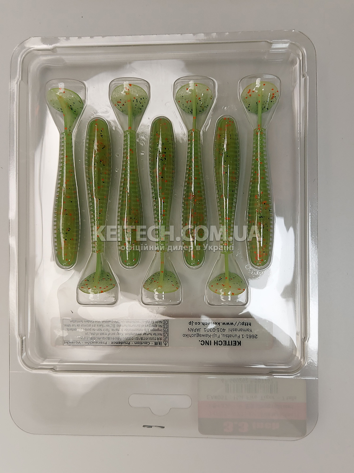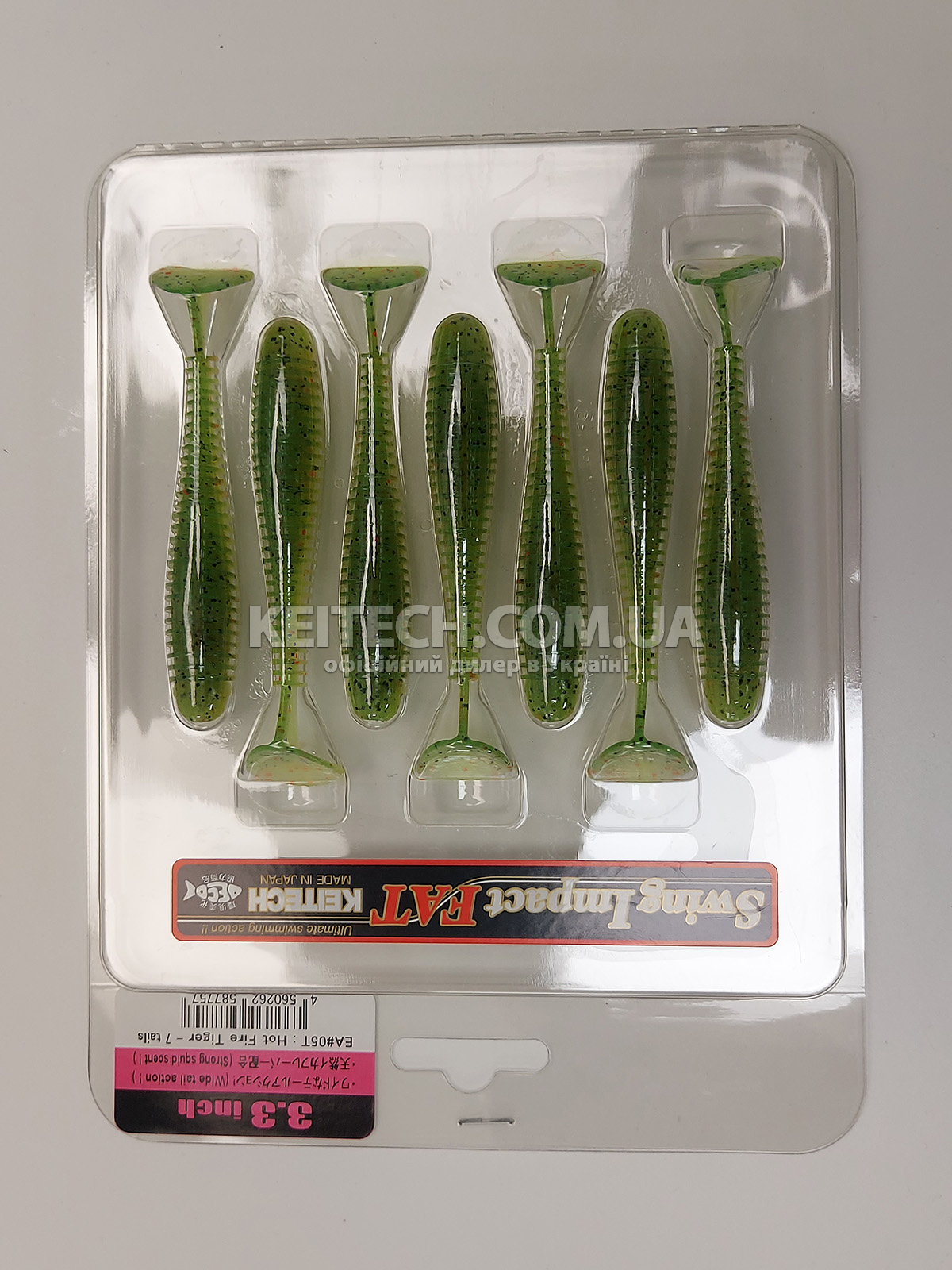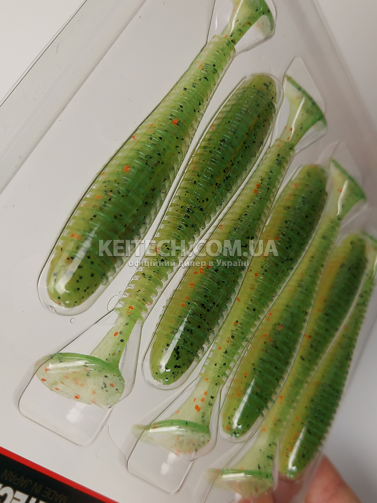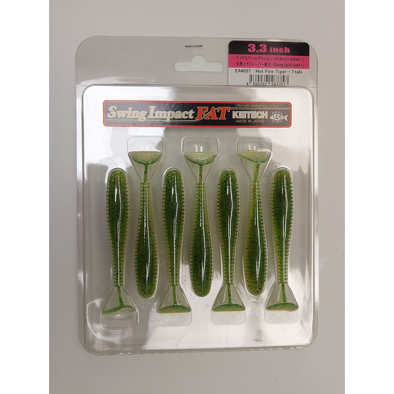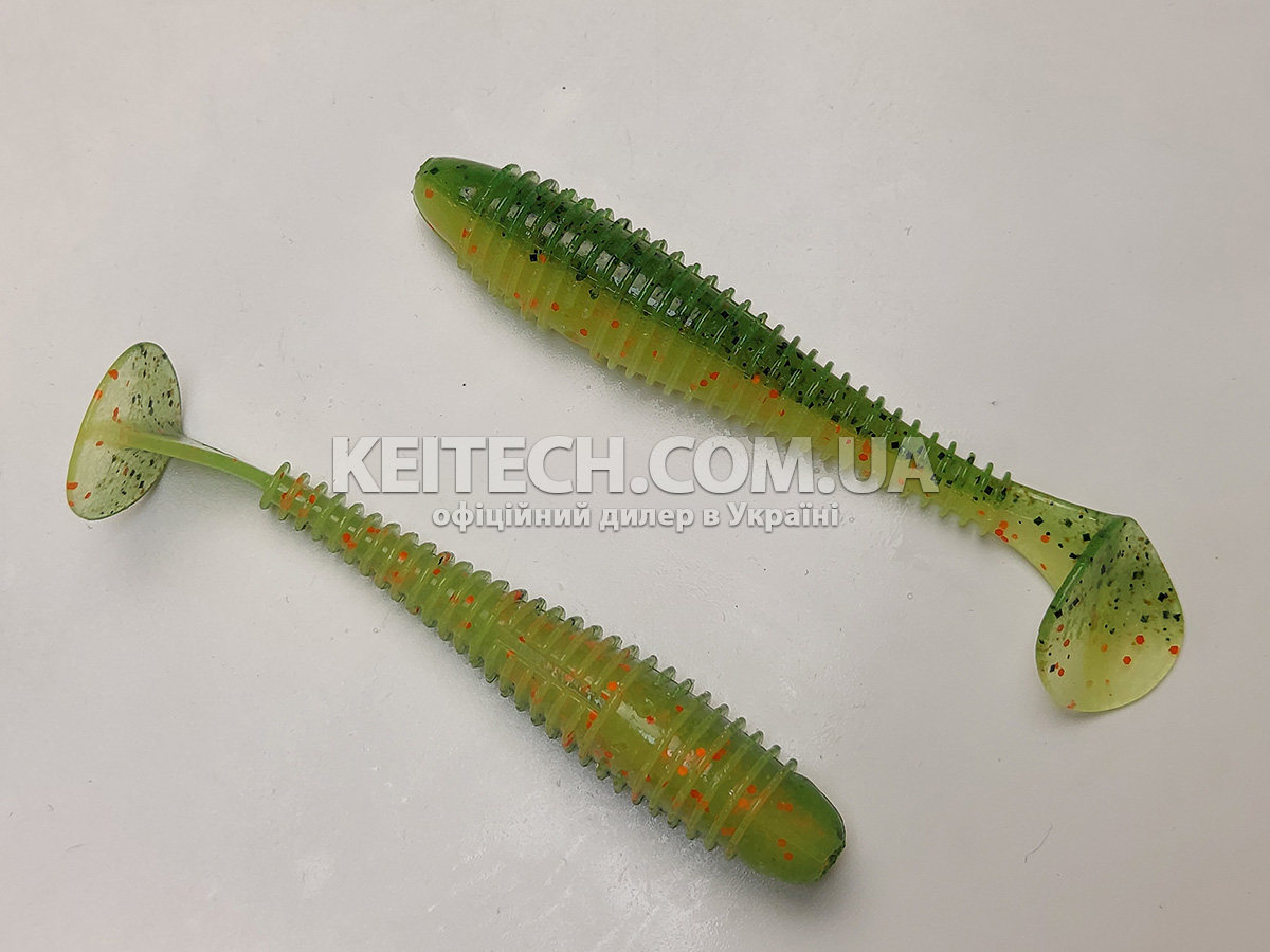 ДокладнішеСилікон Keitech Swing Impact Fat – «Товста» версія Swing Impact. Має більш коротке та м'ясисте тіло. Завдяки ребристості та широкій рухомій п'яті створює у воді потужніші коливання, ніж звичайна версія.