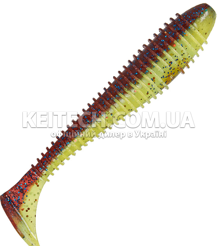 ДокладнішеСилікон Keitech Swing Impact Fat – «Товста» версія Swing Impact. Має більш коротке та м'ясисте тіло. Завдяки ребристості та широкій рухомій п'яті створює у воді потужніші коливання, ніж звичайна версія.