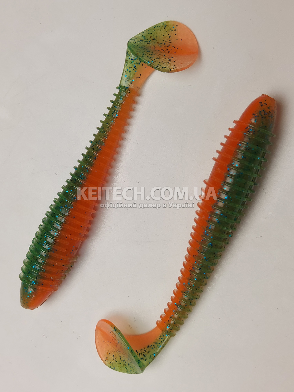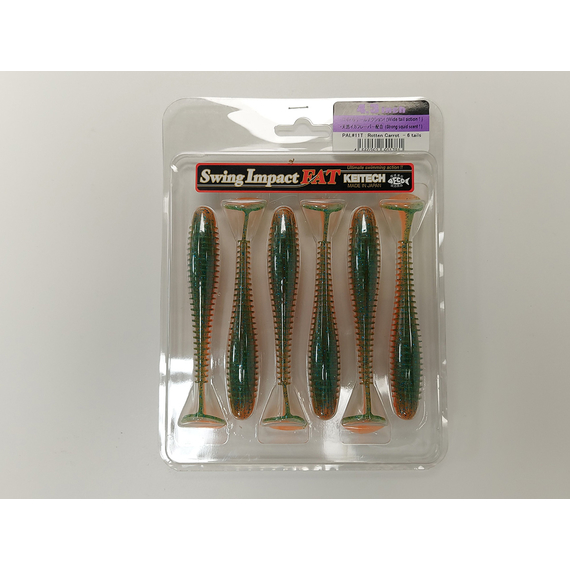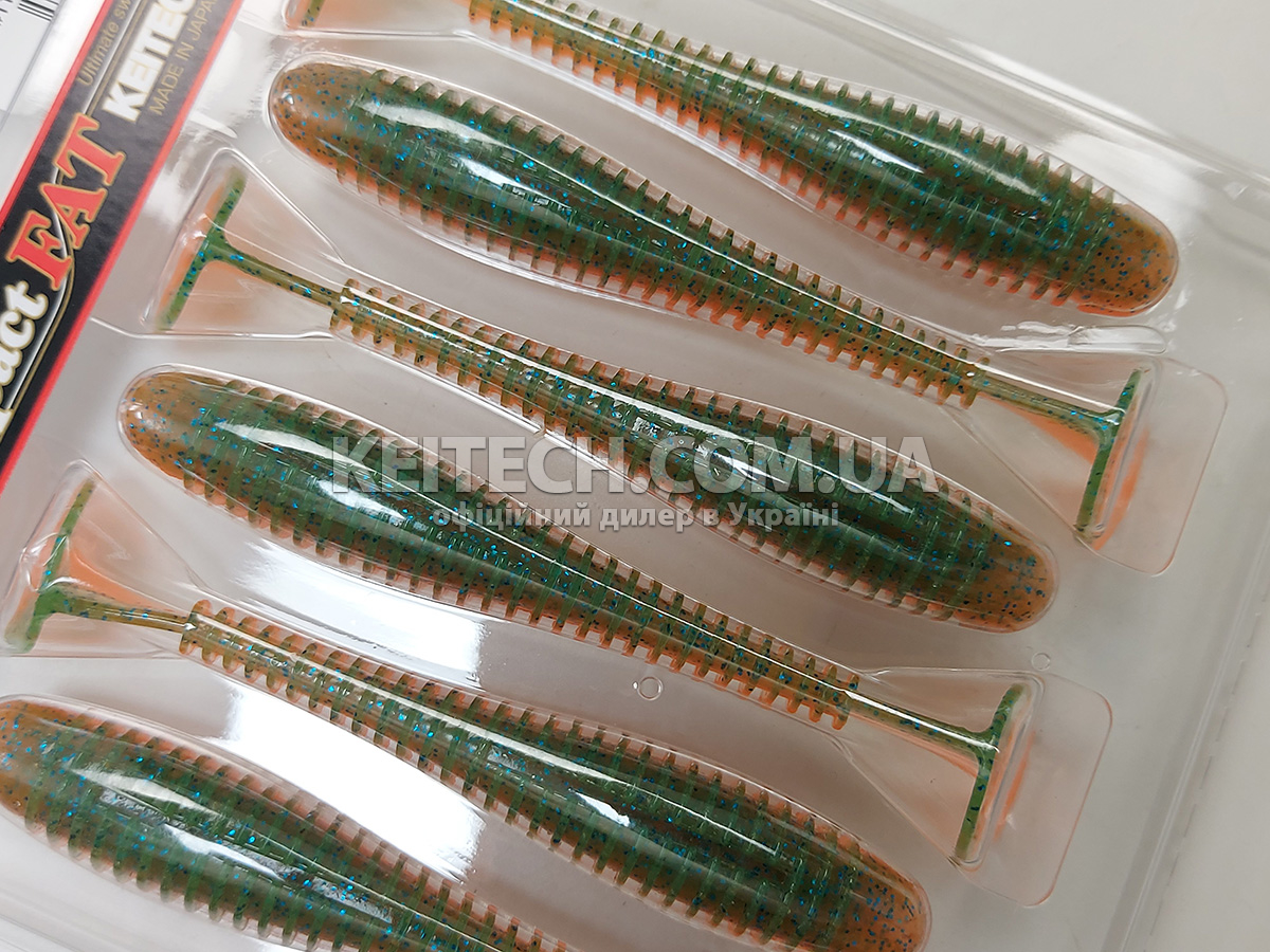 ДокладнішеСилікон Keitech Swing Impact Fat – «Товста» версія Swing Impact. Має більш коротке та м'ясисте тіло. Завдяки ребристості та широкій рухомій п'яті створює у воді потужніші коливання, ніж звичайна версія.
