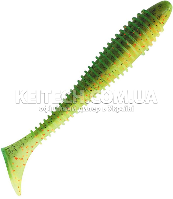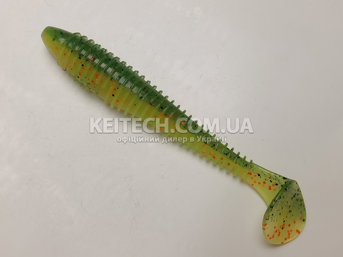 ДокладнішеСилікон Keitech Swing Impact Fat – «Товста» версія Swing Impact. Має більш коротке та м'ясисте тіло. Завдяки ребристості та широкій рухомій п'яті створює у воді потужніші коливання, ніж звичайна версія.